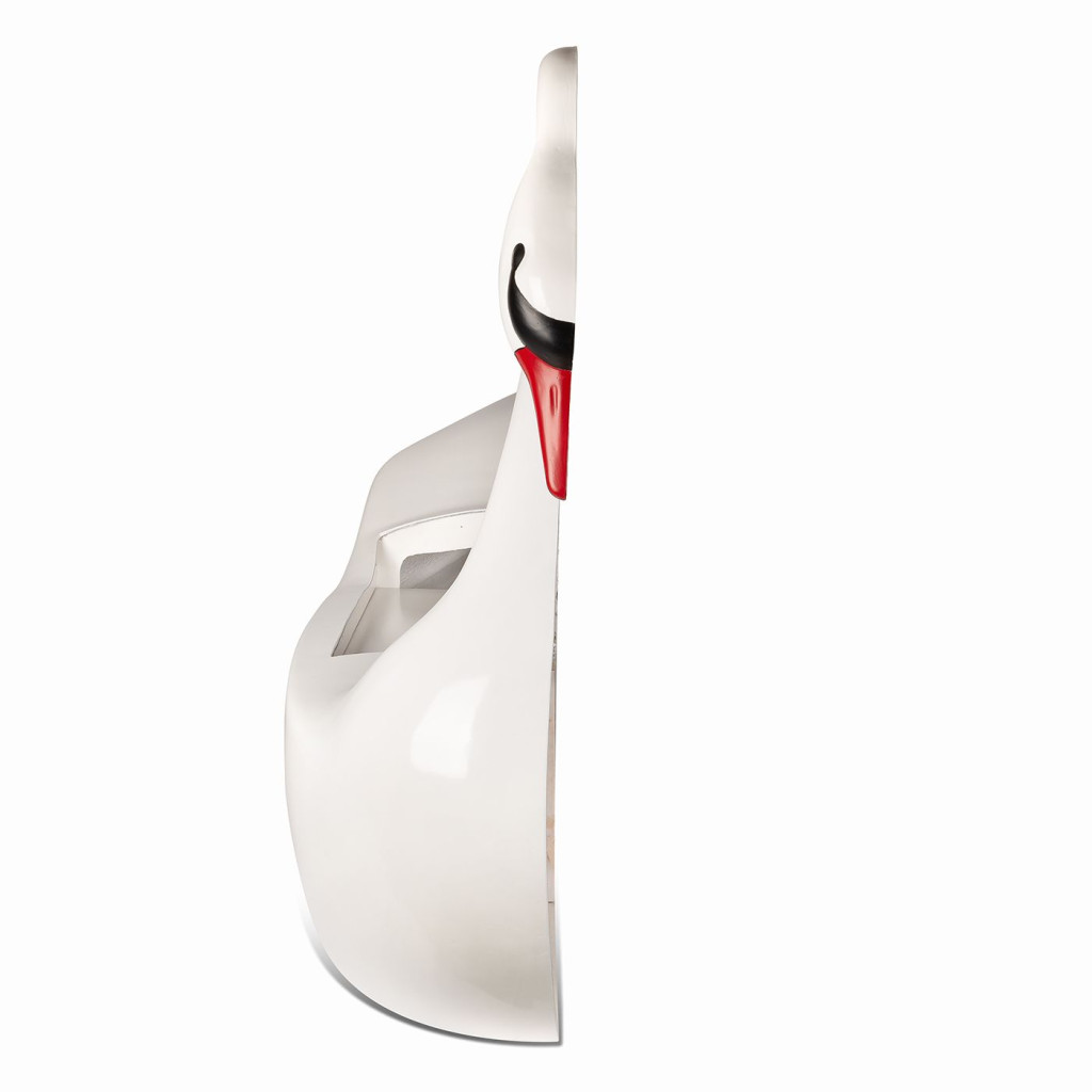 This full-size white carousel swan is designed to be hung on the wall as a decoration for the home or creative work environment.It is an exact polyurethane foam replica of the typical carousel attraction, which was then cut in half.