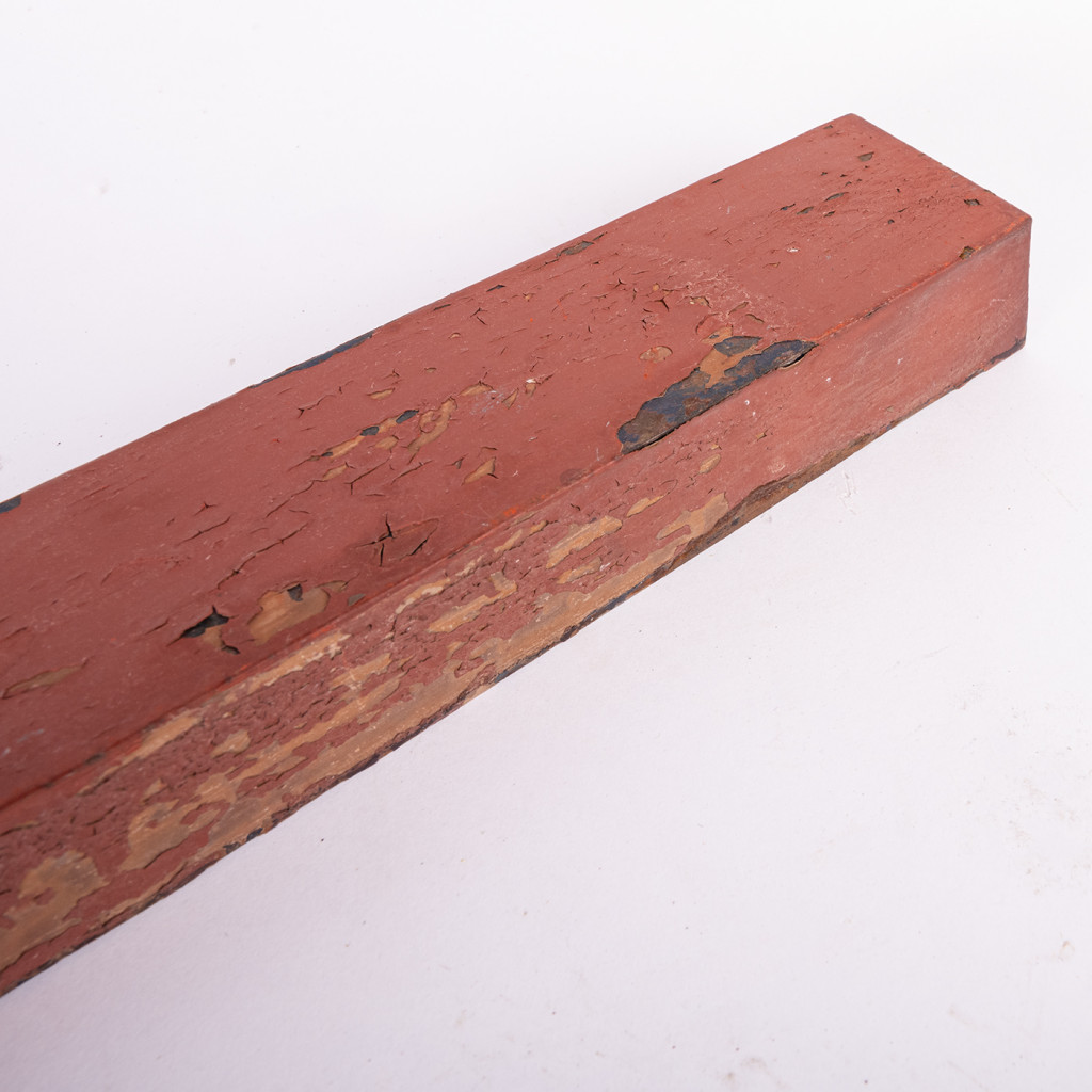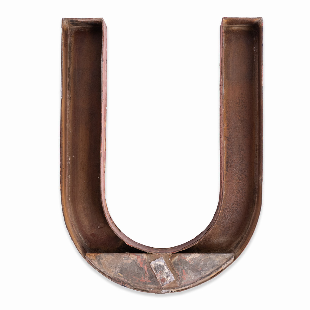 A metal hollow letter painted in red from the original signboard. The letter is in original condition and is scratched in places.