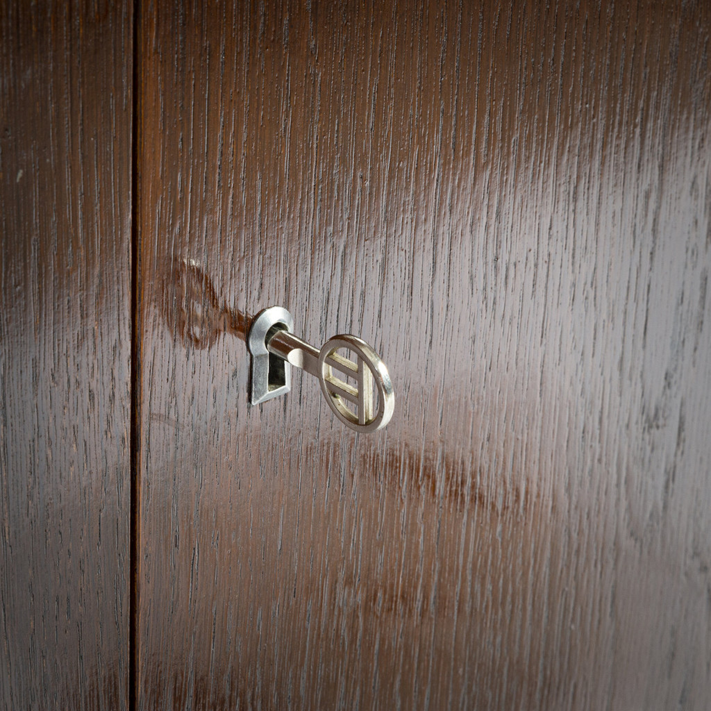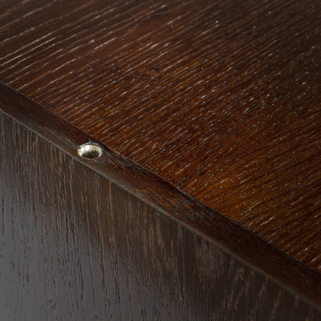 The U-460 is suitable for any room. It is compact and relatively light, making it easy to handle. It is divided into a storage section with a lengthwise shelf and a section with four drawers in grey with black handles. The cabinet has a veneered (oak) surface and a solid wood base. We have consulted Jiří Jiroutek, from whom we also have the exclusive right to renew the production of the entire U-450 series from 2018.
