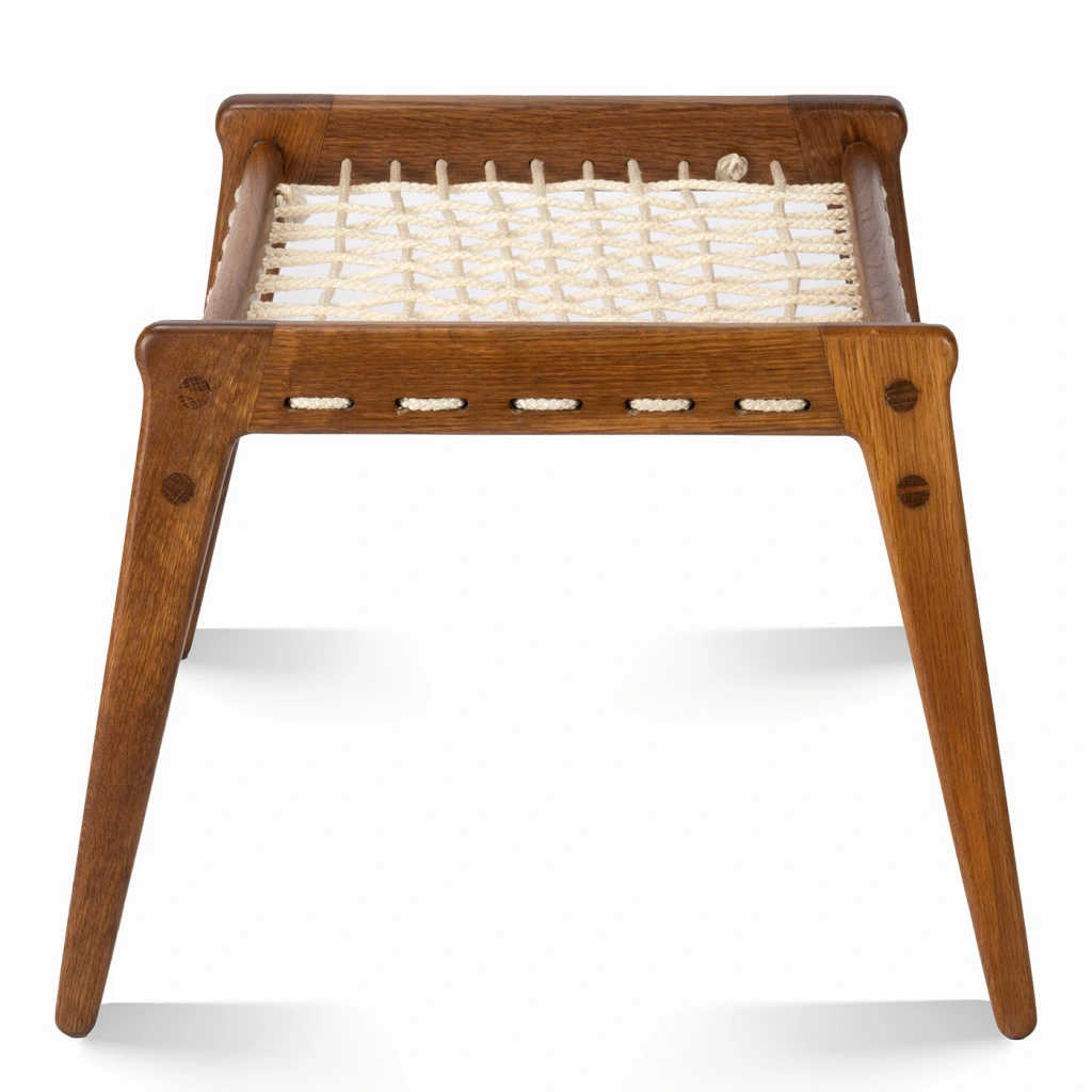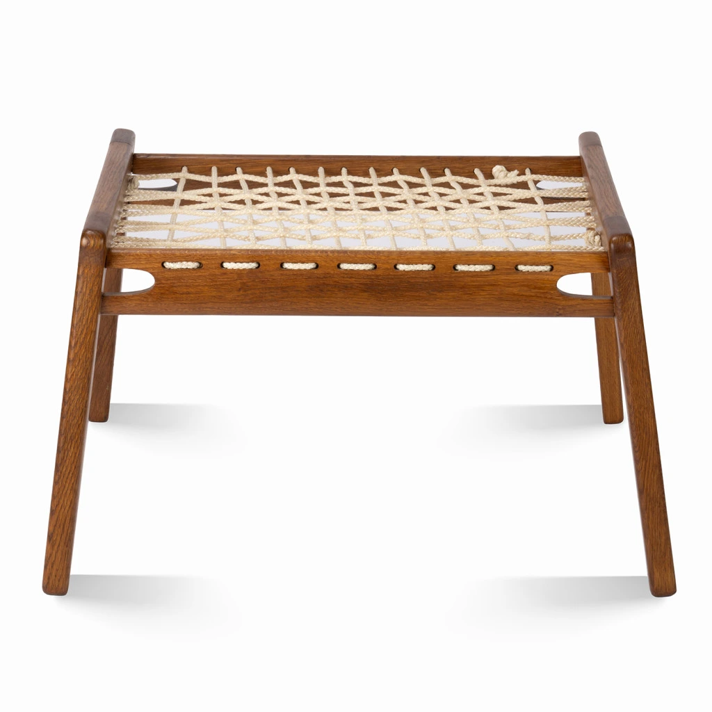 The footstool has been completely restored in our workshop, including the replacement of the rope.