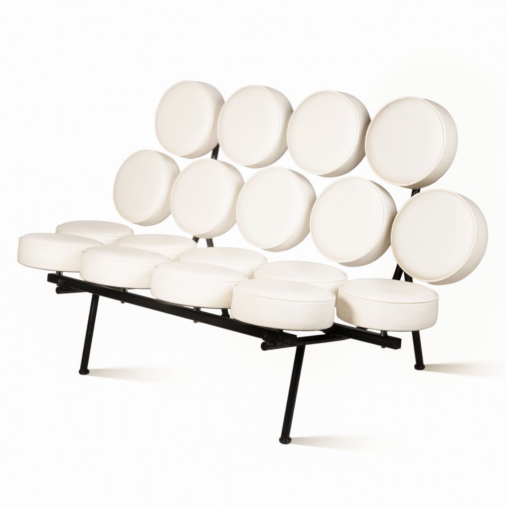 The unique "Marshmallow" sofa was designed in 1956 by George Nelson, a designer and the Director of Design at the American company Herman Miller. However, the true author of the design within Nelson's studio was the designer Irving Harper. Its playful and unusual appearance was ahead of its time. Although the sofa was created as early as the mid-1950s, it is today considered one of the very first manifestations of early Pop Art in furniture design. The name is derived from the round cushions, which resemble the popular candy in their shape. The original intention was to produce a very inexpensive sofa through the clever use of mass-produced cushions. However, due to the complex frame construction and time-consuming manual assembly, it instead became one of the most expensive pieces in the brand's catalog at the time.