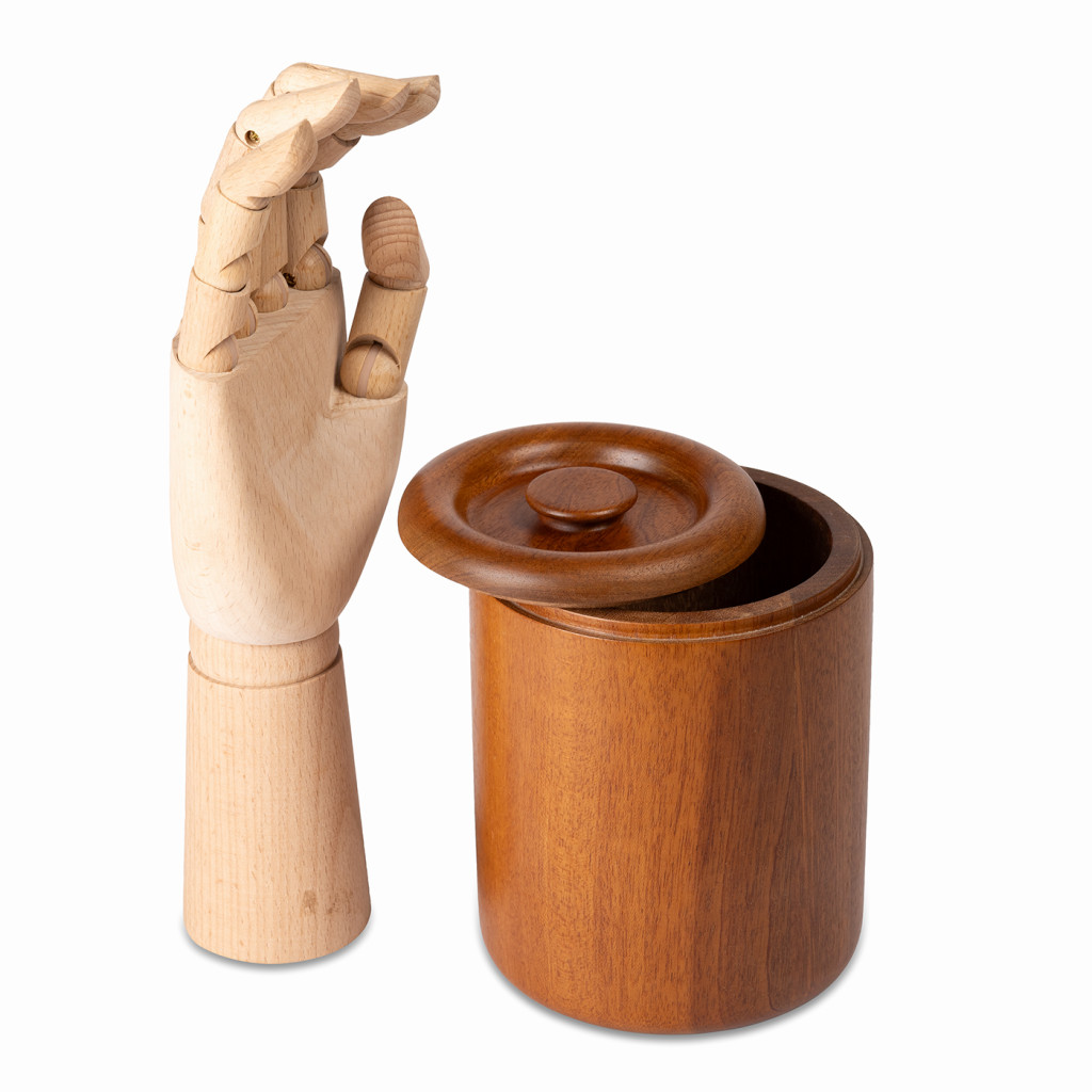 A wooden box by artist Antonín Hepnar made using woodturning technique.