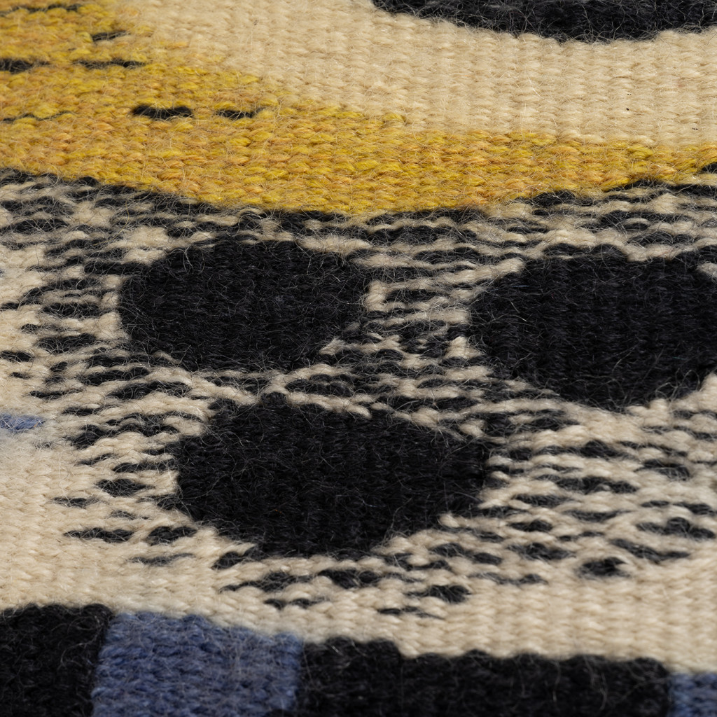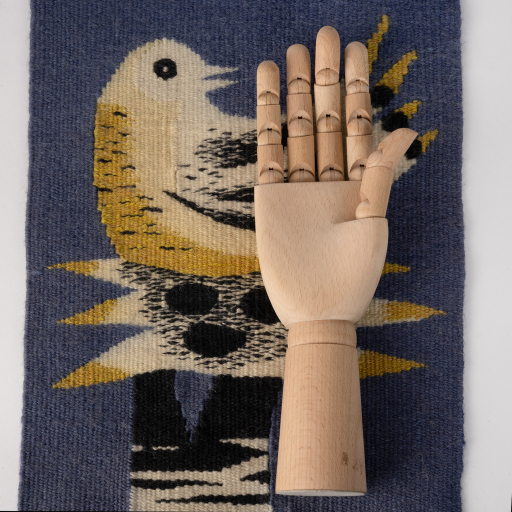 A charming wool tapestry with a bird motif, probably made in the 1970s by the German company Bayer Leverkusen. The woven tapestry is mounted on a wooden hanger and the bottom hem is decorated with fringes. The tapestry is in excellent original condition and bears an official patch confirming that it has been treated against moths with Eulan. Bayer owned the patent for this treatment until 1988.