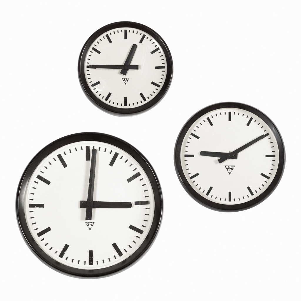 Hodiny s označením PV 274 od firmy Pragotron, výrobce hodin, které jsou nedílnou součástí českého veřejného prostoru, najdete je na nádražích, ve školách a jiných veřejných budovách. Jedná se o model v tmavě hnědém provedení s kontrastním ciferníkem s výraznými ručičkami. Hodiny Pragotron jsou typické svým jednoduchým designem, klasický číselný ciferník je pro větší přehlednost abstrahován na výrazné pětiminutové značky, dále na něm najdeme už jen klasické trojúhelníkové logo firmy. Rám je vyroben z bakelitu, plechový ciferník je krytý sklem. Hodiny jsou přestavěné na bateriový strojek napájený 1 x AA baterií, fungují jako nezávislé nástěnné hodiny.