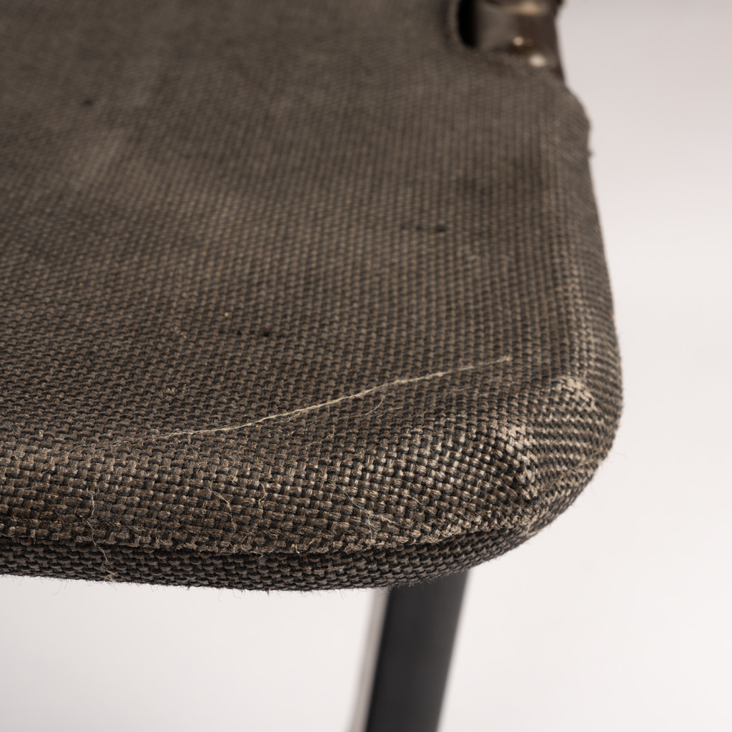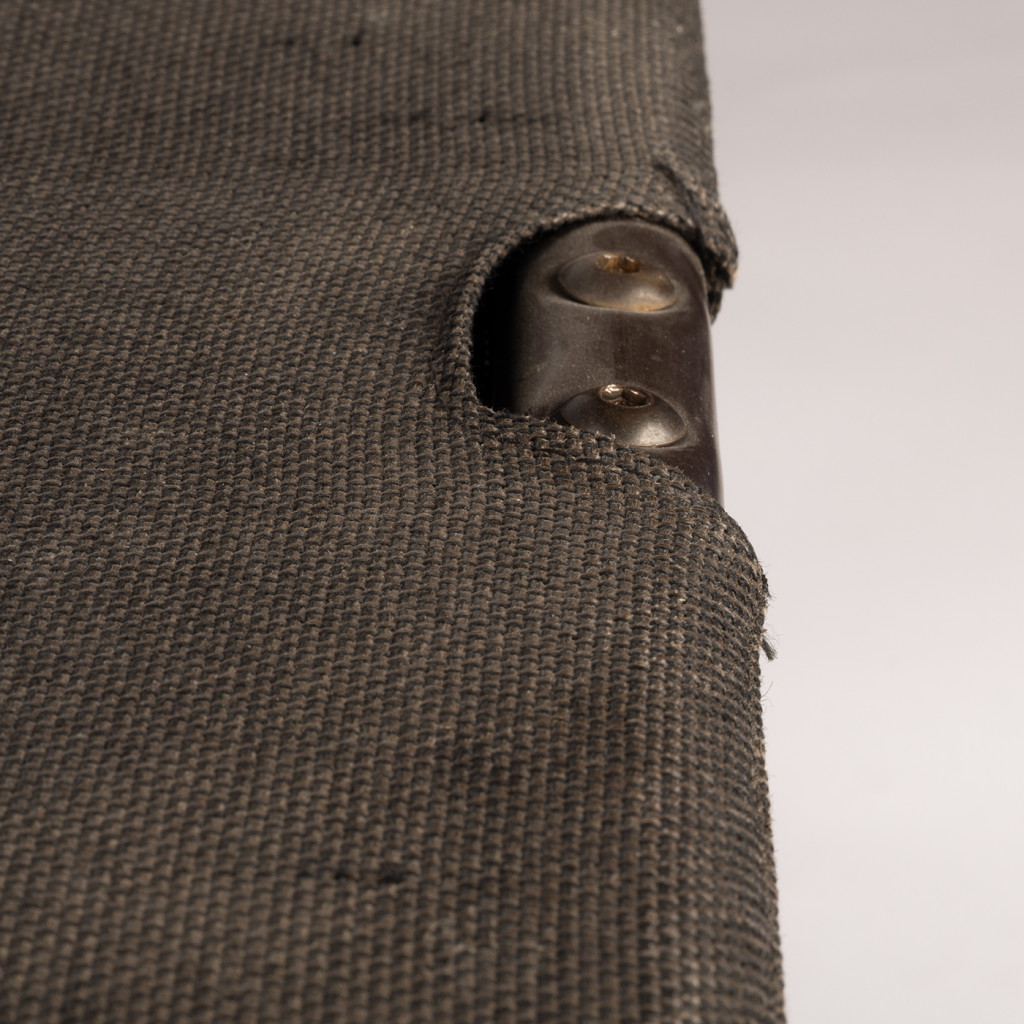 Lehátko je ponecháno v původním stavu, podnož je místy odřená a látka ošoupaná.