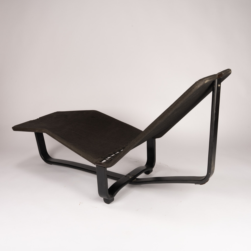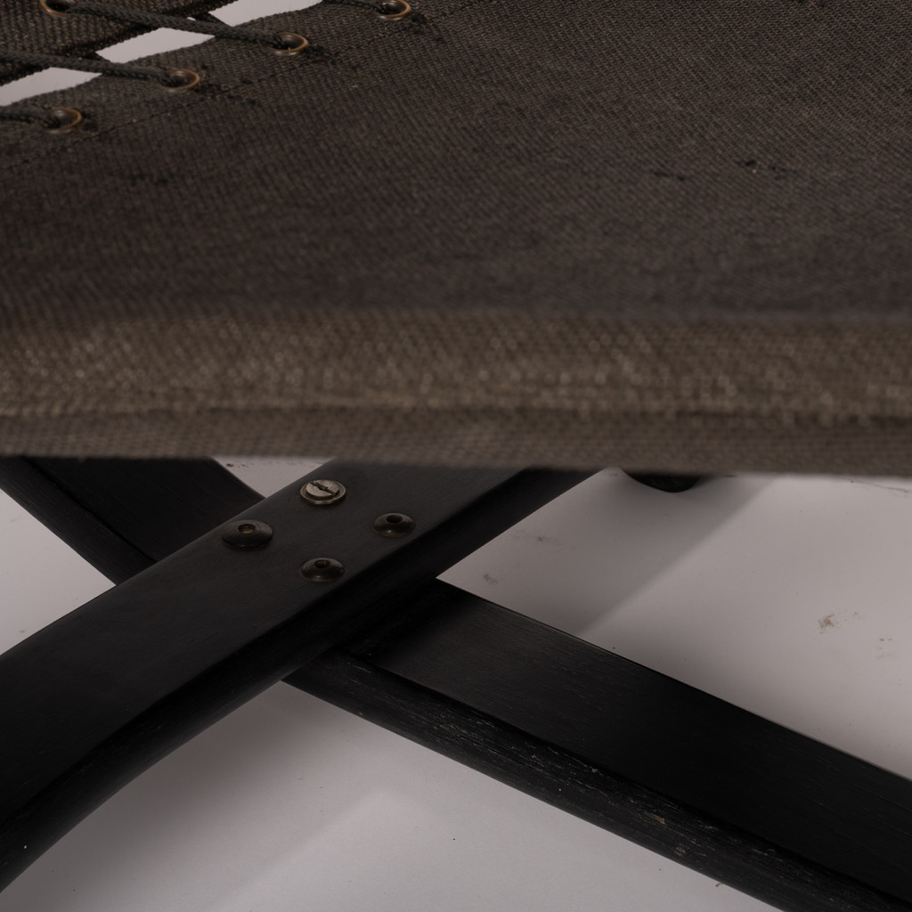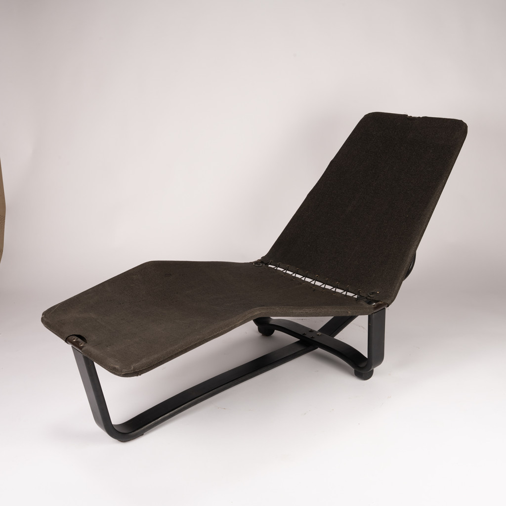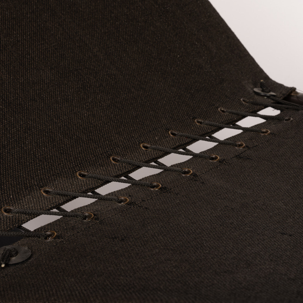 Křížová podnož je vyrobena z masivního bukového dřeva, které je mořeno do černé barvy. Konstrukce je potažena pevnou černou režnou látkou se šněrováním v místě zlomu. Lehátko lze nastavit do několika poloh, stačí se pouze opřít a samo se přesune do jiné polohy. Původně byl součástí lehátka i kožený sedák, který je možné si nechat vyrobit.