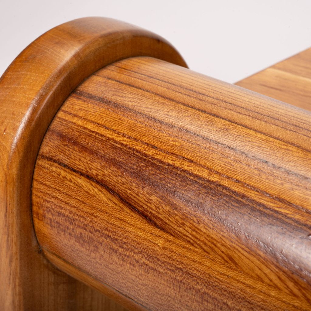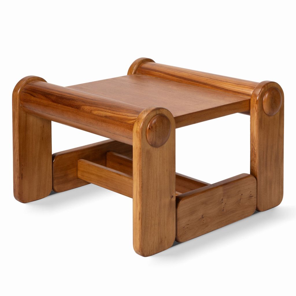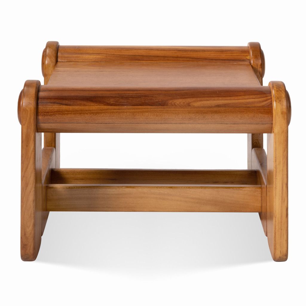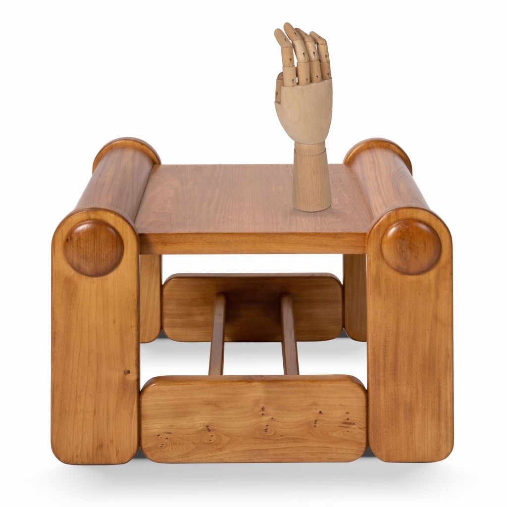 Nízký konferenční stolek se zajímavou geometrickou konstrukcí z jasanového masivu. Dřevo je mořené do světle hnědého odstínu v matném provedení. Stolek je ve výborném stavu po kompletní renovaci v naší dílně. Tvoří pár s křeslem, které také najdete v naší nabídce.
