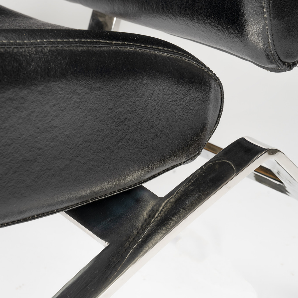 Kožené křeslo Dodo F396 vyrobeno podle návrhu nizozemského designéra René Holtena pro firmu Artifort. René Holten se narodil roku 1961 v nizozemském Maastrichtu a je známý svými inovativními výtvory v oblasti nábytku a osvětlení. Křeslo má jednoduchou chromovou linii. Sedák s opěrákem jsou potaženy pravou kůží. Chromová konstrukce křesla i sedák jsou v perfektním původním stavu bez jakéhokoliv poškození.