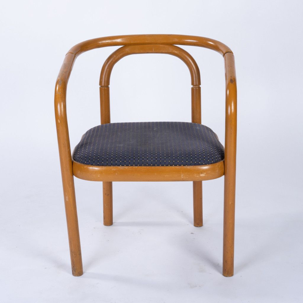 Křeslo má konstrukci z nastaveného ohýbaného bukového dřeva mořeného do světle hnědého odstínu v matném provedení. Polstrovaný sedák má původní čalounění. Konstrukce je v původním stavu a lehce rozviklaná, s viditelnými stopami používání.