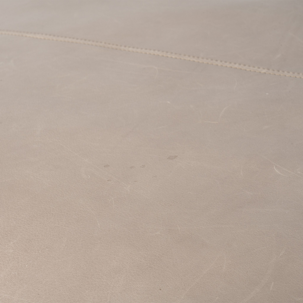 Ottoman je vyrobený z kvalitní kůže značky Pelle Frau® a polštář je plněný husím peřím. Nohy jsou vyrobeny z hliníku a lakovány do barvy titanu. Netkaná textilie Je ve spodní části na jednom místě protržená. Jinak je ve velmi dobrém původním stavu.