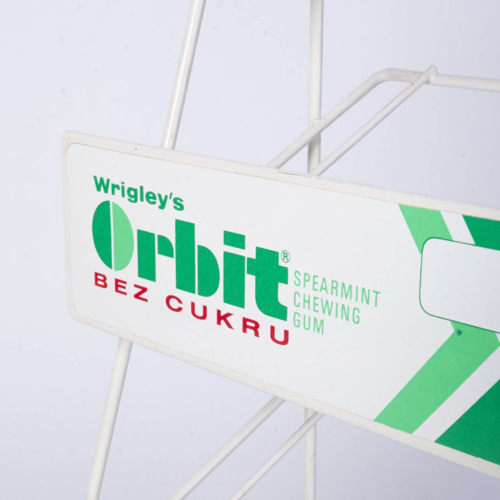 Ikonický stojánek na žvýkačky Orbit značky Wrigley’s z 90. let. William Wrigley původně prodával mýdlo a prášek na pečení a žvýkačky dával k nákupu jen jako reklamu. Obrovská obliba dárku ho inspirovala k vytvoření samostatné značky.