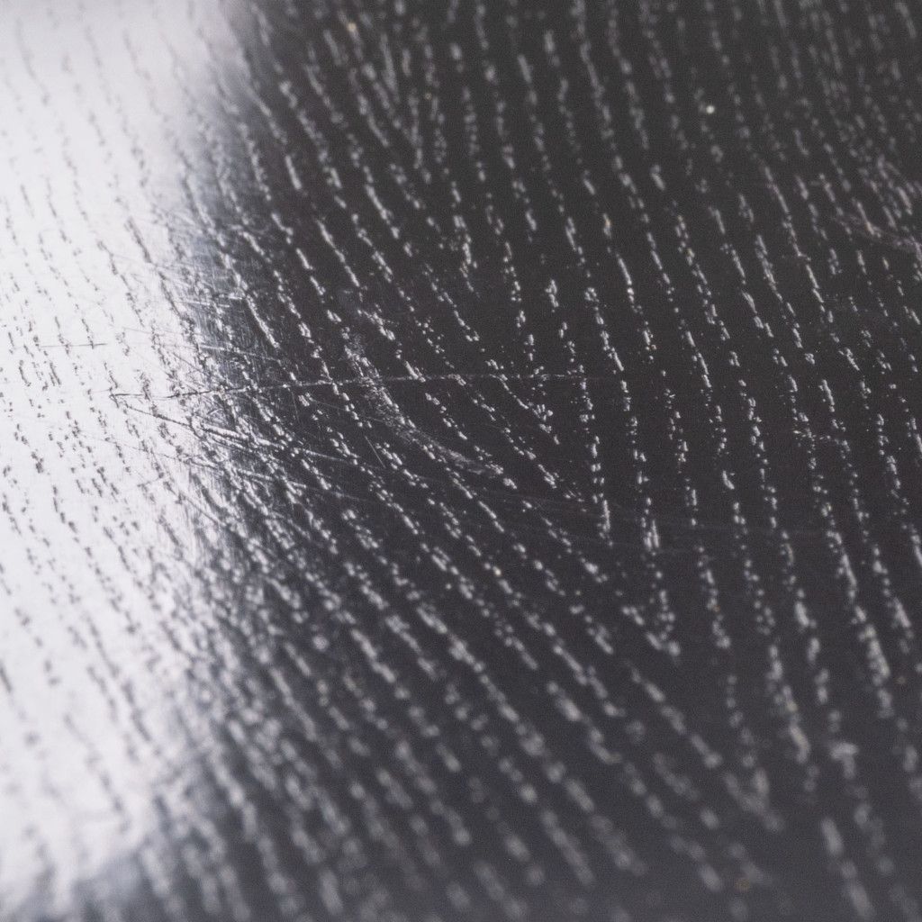Židle se dodnes vyrábí v různých barevných provedeních. Tato byla vyrobena v roce 2009 z tenké jasanové překližky a mořená do černého matného odstínu. Sedák podpírá křížová kovová chromovaná konstrukce a čtyři tenké nožky. Dřevo má výraznou dřevokresbu, která skryje i drobné škrábance a vrypy viditelné na fotografiích. Židle je ve velmi dobrém stavu po částečné renovaci v naší dílně.